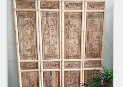 特点:在木板上进行2~3厘米的雕刻之后在使用浮雕、透雕、彩绘、镶嵌等手法,将中国传统的一些图案,如花鸟山水等,做成屏面上的装饰。这种屏风既贯穿了实用性,又将欣赏性以及美学价值都急于了一体,非常的不错。